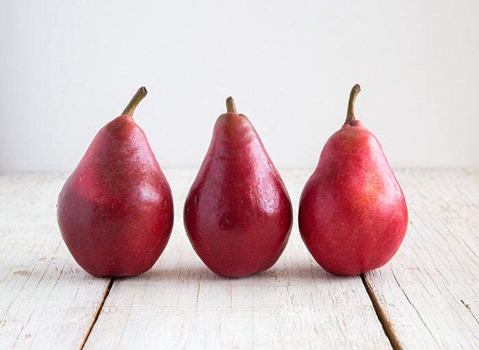 A striking and delicious twist on the worlds favorite pear, Red Bartlett fruit boasts a number of improvements on the classic Bartlett pear. Scarlet red coloring of these pears is the most striking and apparent difference, but this beautiful shade of red is more than just added visual appeal! This bright red coloring is certainly beautiful and nice to look at, but it’s also immensely useful and practical in solving an issue that pear growers have faced for centuries! A timeless problem with growing pears is that due to their firm texture and ever-constant coloring, it can be quite difficult to know for certain when they are ripe. Green pears like Bartlett and D’Anjou attain their coloring when they are quite small and keep this same shade of green up until they are picked and eaten. Red Bartlett pears are altogether different because they don’t take on their signature scarlet flush until they are fully ripe and ready to eat! When these pears are fully red with color, you can be certain they are also delicious.