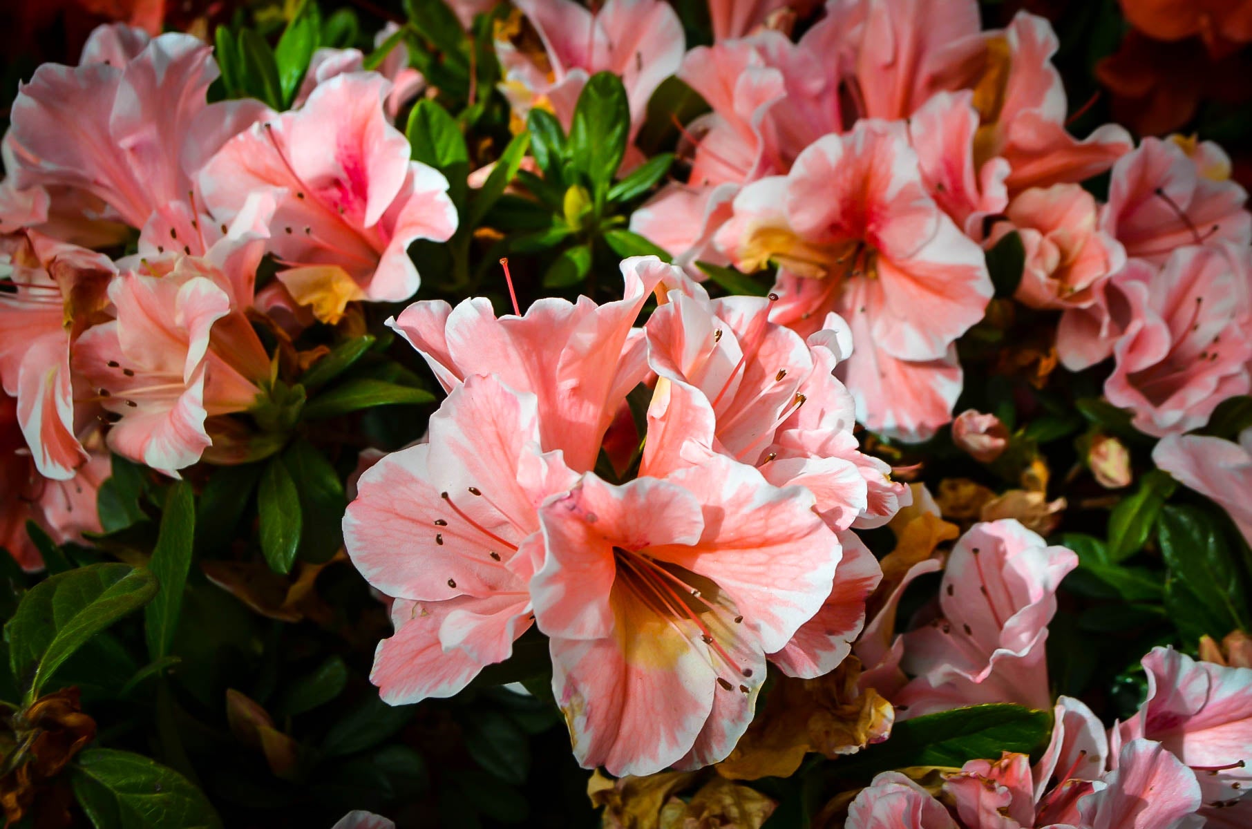 "Autumn Sunburst" Encore Azalea (1 Gallon) - Coral pink flowers with white highlights bloom spring, summer and fall!
