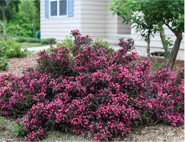 "Shining Sensation" Weigela (1 Gallon) - Prolific, shiny purple foliage contrasts perfectly with its bright pink flowers.