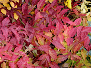 Copper Bush Honeysuckle (1 Gallon) - Brilliant yellow, nectar-filled flowers among copper and green leaves.