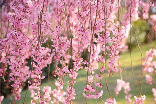 Double Pink Weeping Cherry Blossom Tree - Bright pink blossoms cascade down like a cherry blossom waterfall. (2 years old and 4 feet tall.)