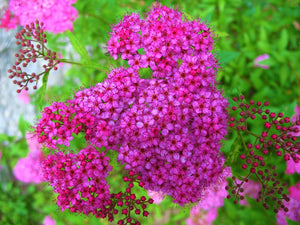 Anthony Waterer Spirea Shrub (1 Gal)- Huge pyramidal clusters of rose-pink flowers, dense spreading green foliage.