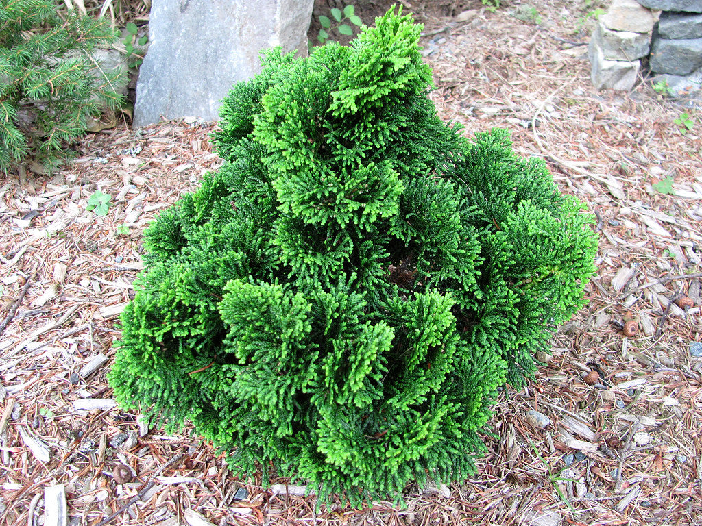 The Dwarf Hinoki Cypress is a beautiful medium-sized evergreen shrub that boasts dark green fan-shaped foliage, a narrow columnar form and extraordinarily little maintenance required beyond the occasional watering through spring and summer. The gracefully spreading limbs gently unfold to attain a unique aquatic shape reminiscent of coral. Widely planted in traditional Japanese gardens, this slender conifer has a strong visual appeal to offer without taking up too much valuable landscape space. Hinoki Cypresses require very little in the way of maintenance as they are virtually unsusceptible to diseases and pests. The Dwarf Hinoki Cypress lives most comfortably in USDA Cold Hardiness Zones 4 to 9 and reaches a mature height of 10 ft. with a spread of 4 ft.