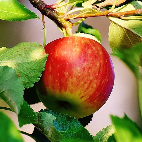 Prairie Spy is a beautiful red apple with cream-colored streaks running across the skin of this large fruit. Originally developed in Minnesota to be the commercial apple variety that could sustain apple orchards in cold climates. Prairie Spy was meant to be the cultivar that growers could produce in regions generally considered to be too cold and harsh for commercial apple production! This delicious cultivar is incredibly sweet when it reaches peak ripeness and is great for fresh eating, baking and cooking! Over the years, newer cold-hardy apple varieties have become more popular, but Prairie Spy still remains an excellent choice for homegrown, sweet, and flavorful apples. From Montana to New York, Prairie Spy is still widely enjoyed by home orchardists today! Since it's tolerant of the cold, Prairie Spy ripens between late September and early October. This fruit typically reaches peak flavor after other apples have fallen off the tree, allowing growers of Prairie Spy to extend their fruit harvest season by up to 30 days! Prairie Spy is an incredibly resilient and well-flavored apple variety that has been widely planted and enjoyed for almost a century!