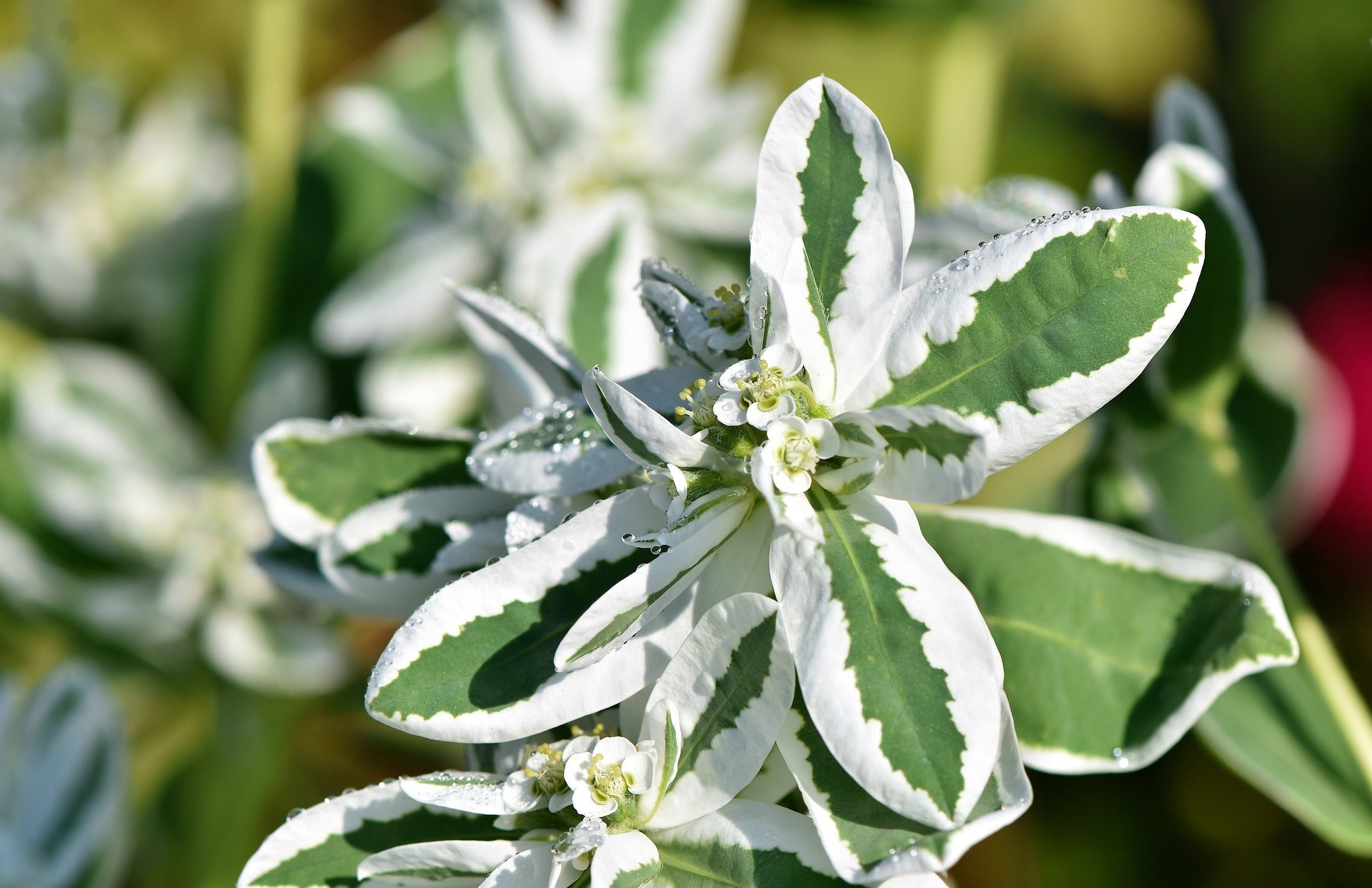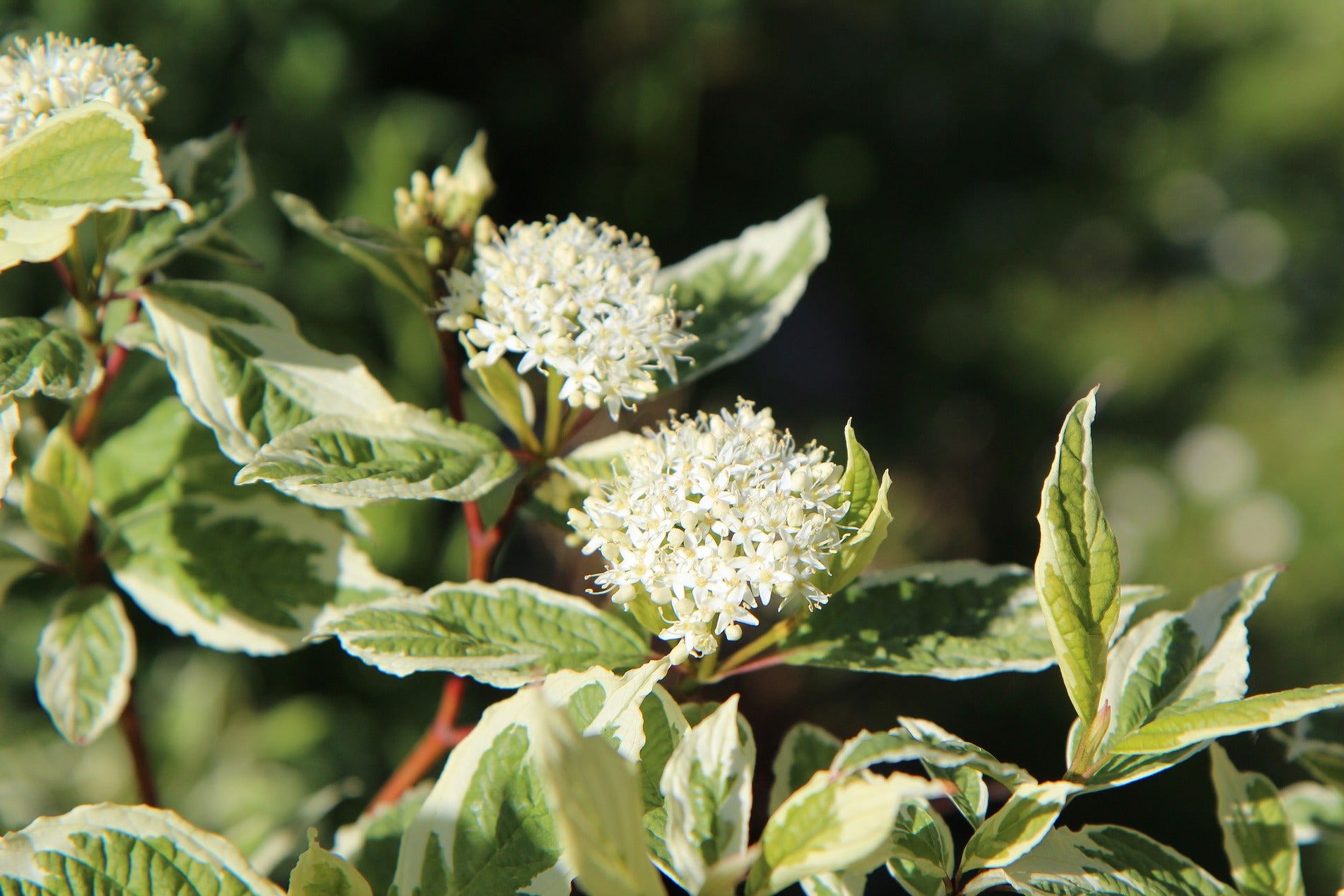 • This plant is prized for its bright red winter stems and variegated green and white foliage.