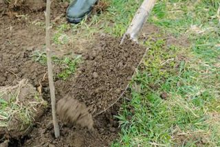 Loosen the soil at the bottom of the hole to help the roots grow and get nutrients.