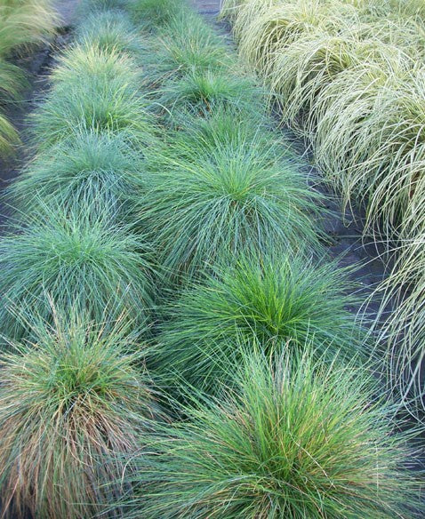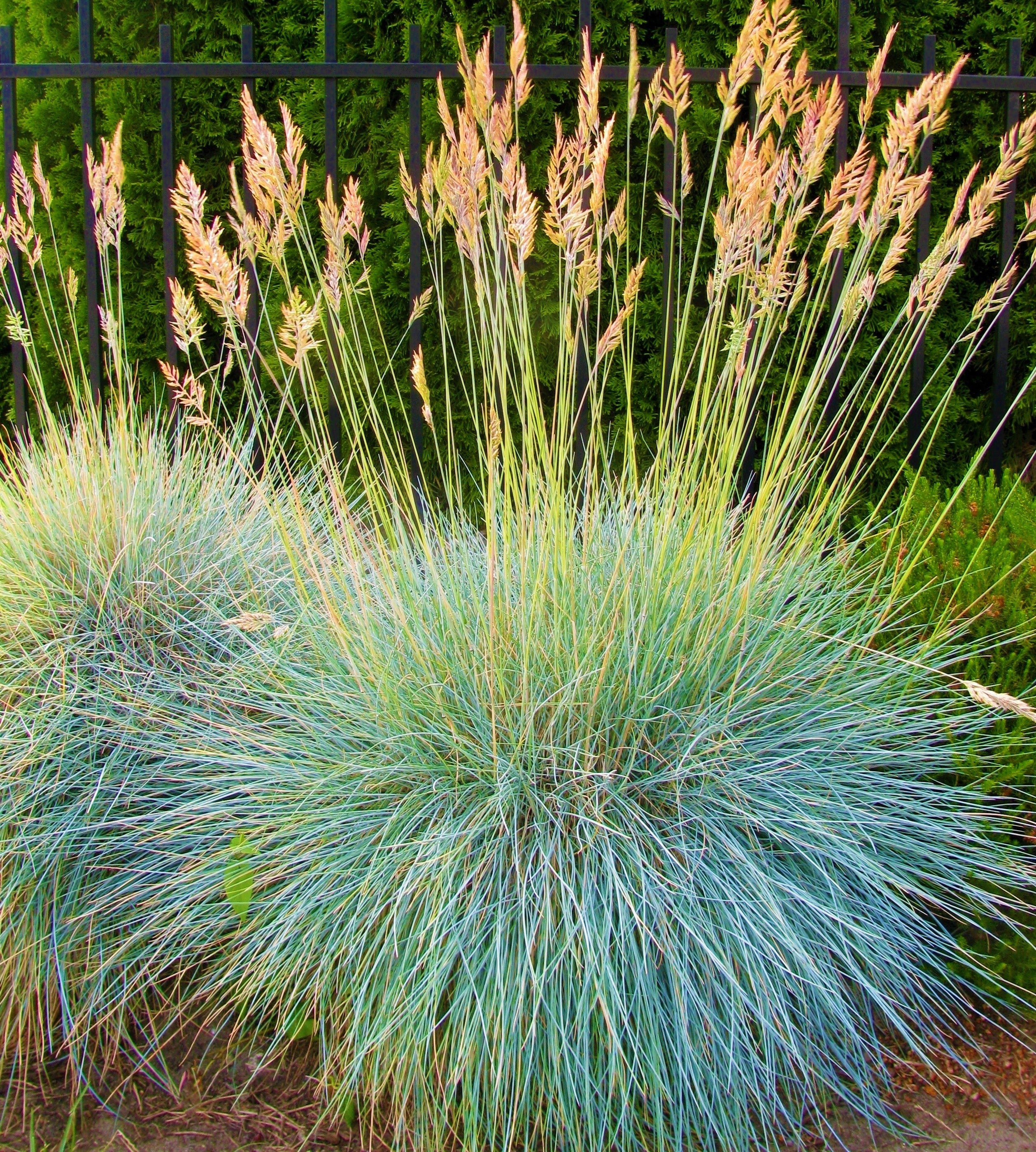 Elijah Blue Fescue Grass is one of the few plants boasting that unique turquoise/silvery-blue color that will grow just about anywhere in the United States. Blue Fescue is an extremely tough and colorful grass that's tolerant of drought, heat and humidity, as well as being notably cold-hardy down to minus 30°F. This dwarf grass retains its ever blue foliage throughout the year in milder winters and adds especially fine texture within the garden scheme with neatly mounded, blade-shaped needles. The luminous silver-blue leaves blend with the like-colored blooms, until the tall, upright plumes turn tan as they mature. Count on this variety to add no-fuss, no-hassle color all year. Elijah Blue Fescue Grass, botanical name Festuca glauca Elijah Blue, is suited to USDA zones 4-11 and flourishes in full sun. It reaches a height and spread of about 12 in. at maturity. Unlike many other blue-tinted ornamental grasses, Elijah Blue Fescue Grass is notably tolerant of heat and humidity, making it a long-standing favorite of gardeners in lower states like California, Florida and Texas. Its fine texture and luminous blue color make it a powerful attraction, whether it's a focal point or planted en masse.